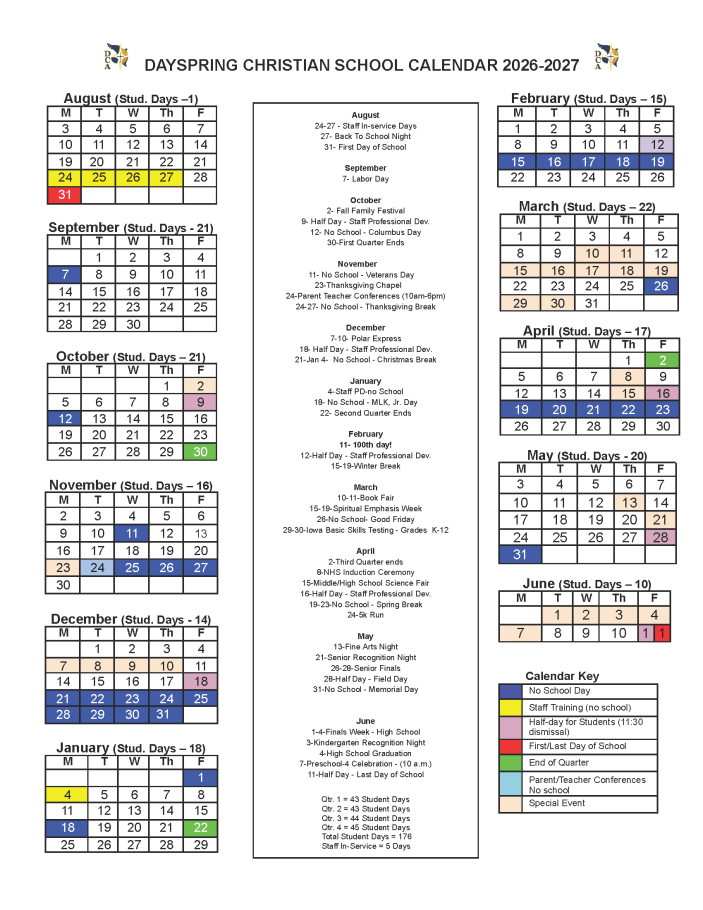 Dayspring Christian Academy Hours:
